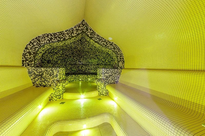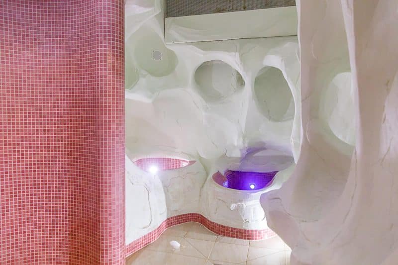 Temperatūra pirtyje siekia 45–50 °C, o drėgnumas – 95–99 %. Aukštas drėgnumo lygis, neaukšta oro temperatūra, iš viršaus krintantis druskų tirpalo rūkas sukuria puikią klimato atmosferą, skirtą poilsiui. Specialiai pritaikytas pirties apšvietimas leis mėgautis šviesos terapija.