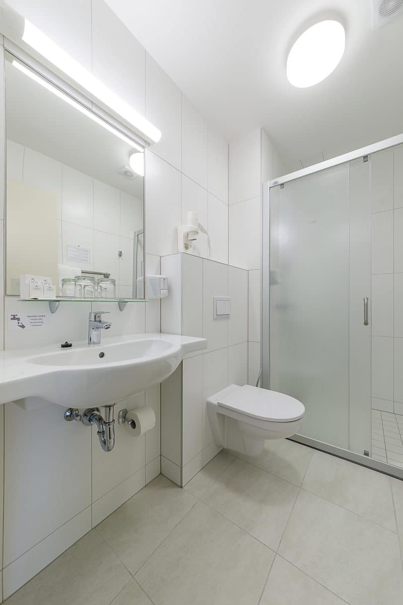 Dviejų kambarių numeris: miegamasis su 160 cm pločio lova ir svetainė su išskleidžiama sofa-lova, dušu ir WC. Kambaryje yra: